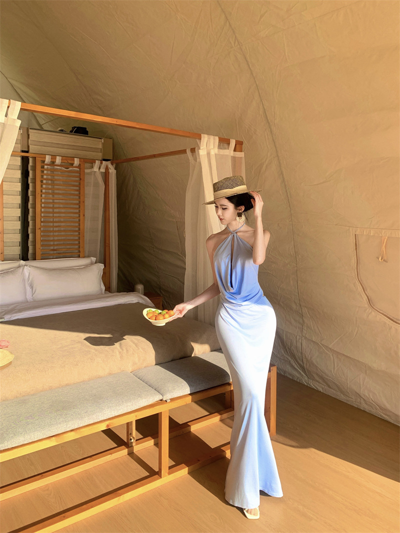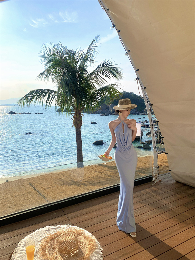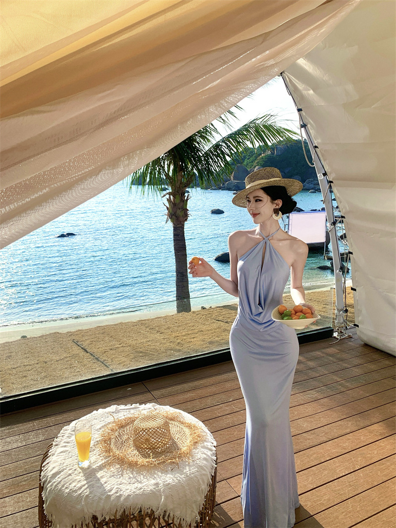 Elegant, Versatile Long Dress With A Cutout Halterneck Design